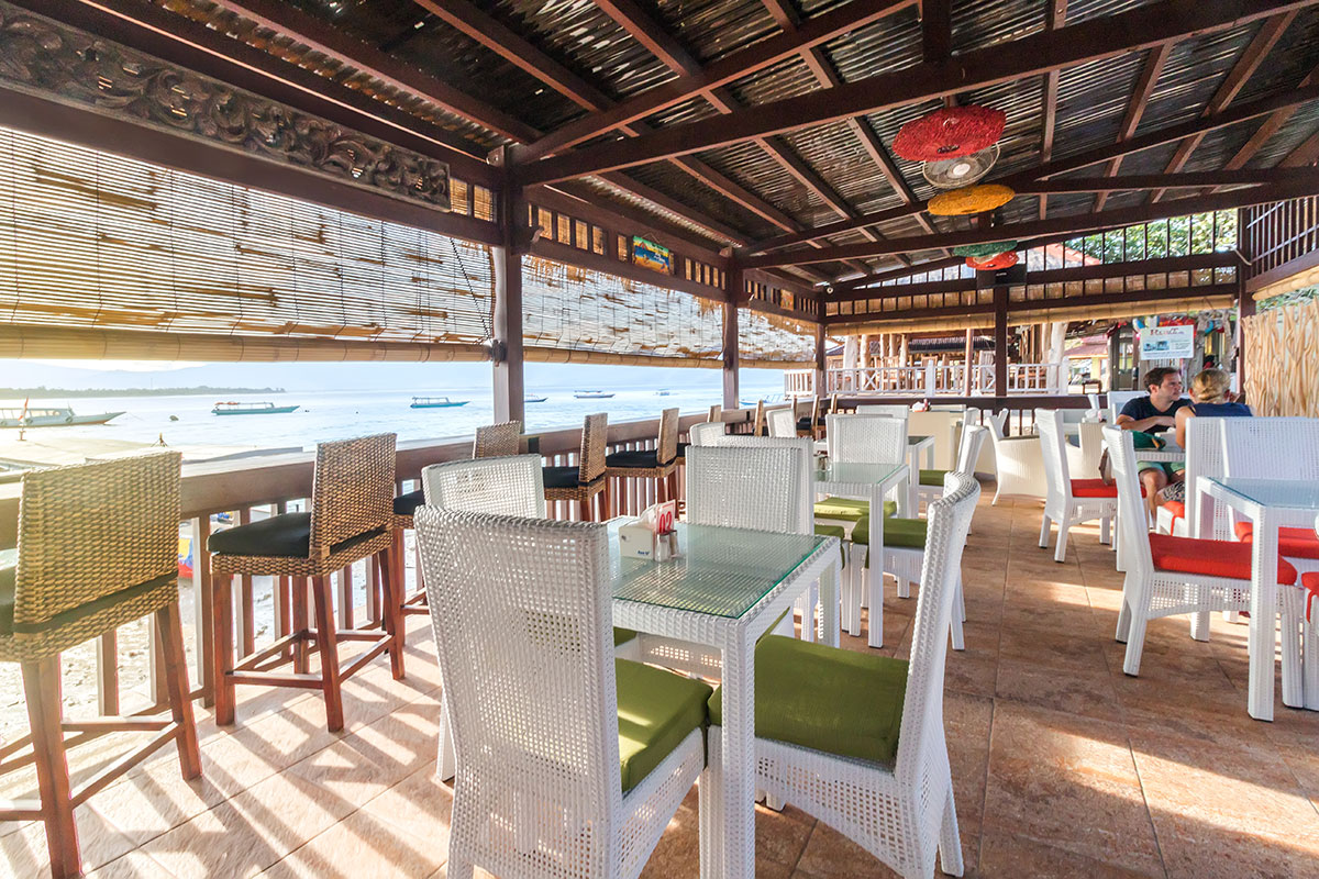 Our waterfront restaurant has one of the best sunrise views overlooking Mt Rinjani and Gili Air. We have tastefully named the restaurant the Typsy Turtle where many guests enjoy cocktails and fine dining.